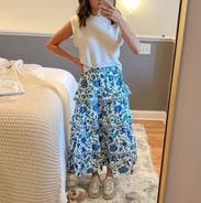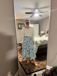Elastic waist skirts are my absolute favorite thing to wear and this one was perfect. So easy to wear, beautiful pattern. Unique and fun cut. I loved everything about this skirt. Will definitely rent again.