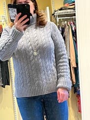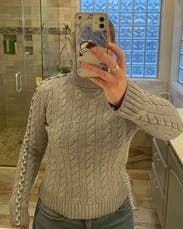 Loved wearing this warm sweater multiple times. The braid adds a delicate and unique touch to the piece. I wore a shirt underneath to make it even more comfy. Would definitely rent again.