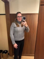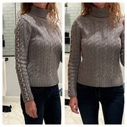 This sweater is so stylish with the details down the shoulders and arm. I will say it’s VERY warm, so I got a bit hot when my office had the heater pumping. If I had been outside more or I a cooler indoor location, it would have been better. I would definitely rent again. I normally wear M tops but ordered a L in this sweater and I’m glad I got the L.