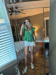 This top was cute and fun and easy to style. I wore once with shorts and once with jeans. It fit well. I would rent again.