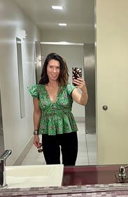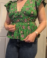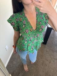 This top is so fun and flattering! It’s a little bit small, the buttons make it easier to close so if you are between sizes, size up