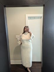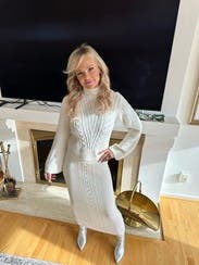 White knit (100% Wool). Skirt. Pull-on closure. 33" from shoulder to hemline. Imported.