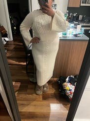 COMFY COZY CHIC <3 Would wear this to a holiday party and super forgiving after a holiday feast hehe. I would say it was a little static-y but nothing a dryer sheet can't fix