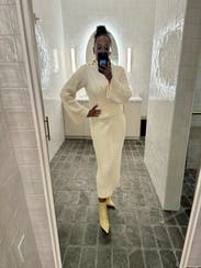 This two piece set was incredible. I styled it easily because I could add any pop of color and it worked. Even as separates, the skirt was warm, flowed nice despite its weight, and had beautiful detailing that was brought out by darker colored tops.