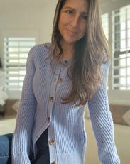 Loved the color! It’s a thick sweater, which usually isn't as stylish/flattering, but this one works. Perfect for days when you don’t need too much warmth but still want something cozy. Not the most flattering when buttoned up on curves, but great layered or left open for a casual look
