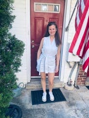 This romper is ADORABLE! Cute light blue color, so comfy, great walking around day fit! I loved that there’s a button up top that closes the chest area. The length is short but not too short. I wore it walking around in Nashville. Super comfy and high quality material!