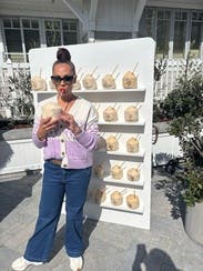 I wore it 4-5 times during the rental! Such a cute piece and easy to dress with a pair of jeans and any top underneath. Great for transitional weather time. It is a cropped fit for sure, so really nice with high waisted jeans! Would consider renting again in the fall. Love the purple and fun design. It might be lucky because I bought a purple car while wearing it lol.
