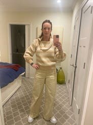 I liked this sweater, but didn’t love. It was pretty heavy so warm, but had to adjust the collar a fair amount while wearing. Didn’t feel super flattering but I did wear it a few times.