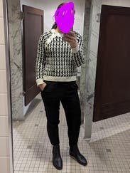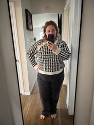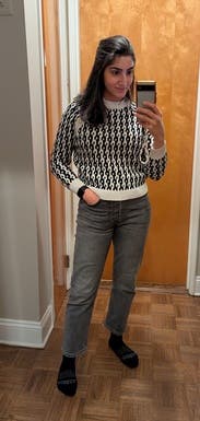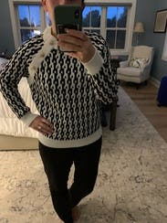 Warm sweater with a good fit. Went well with black pants and gold jewelry