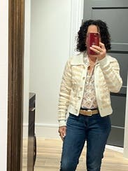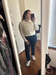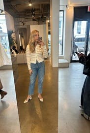 Wore a few times - worked great dressed up with a black mini/tights/loafers, and dressed down with jeans. I took a M (usually a S) and it was perfect. Gave Chanel vibes