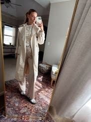 I rented for a trip to Paris, and it was perfect. I could have gone even a size up for a looser look and I am between a size 6/8. Really cute and would recommend sizing up at least 1 size.