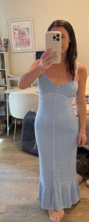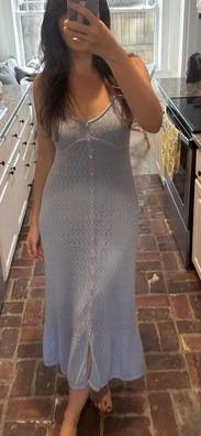 Wore this dreamy blue crochet-knit dress to a Bridgerton-style bridal shower and felt like a modern-day duchess. The fit was flattering, the fabric breathable, and it hugged in all the right places without feeling restrictive. Styled it with vintage green accessories for a pop—and got compliments all day. The length is perfect for petites if you’re pairing with a heel, and the subtle stretch makes it super comfortable for outdoor events. Highly recommend for garden parties, high tea, or any occasion that calls for a little flair. Would rent again? Absolutely. Rating: 10/10 Event: Bridal Shower Size worn: L