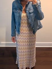 Love this knit dress. Very comfortable and flattering. Beautiful colors.