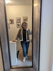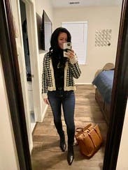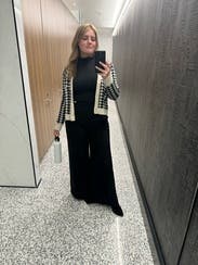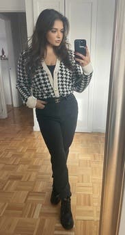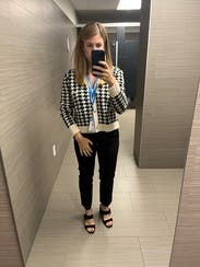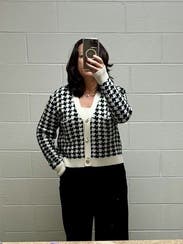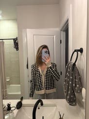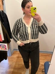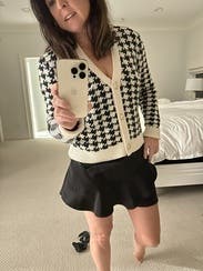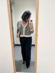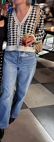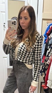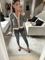 This is a great cardigan to elevate a basic outfit, love the houndstooth pattern. The fit is just the right amount of loose to still be flattering.