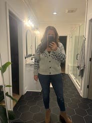 Wonderful fit at 33 weeks pregnant. Great look with jeans.