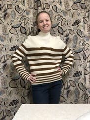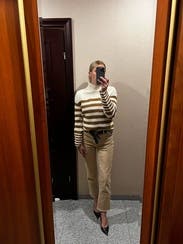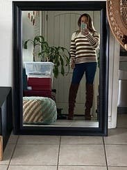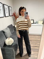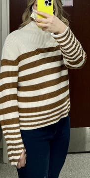 This sweater was great for my trip to chicago, I loved the cuts in the sleeves and the structure of the stripes in the front was unique and flattering!
