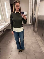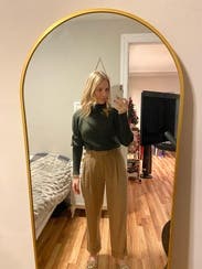 Loved the color. Great fall sweater. Wore to work with khaki trousers