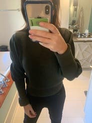 There were a lot of things to love about this sweater like the color, the puffy sleeves, etc. However it was far too cropped to even wear out of the house for me...I even sized up and it was still too short. This sweater is 100% a crop top.