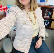 I loved this blazer for a fun but professional look at a winter work event. My magnetic name tag would not stay on the thick tweed, but no other complaints and I got tons of compliments!
