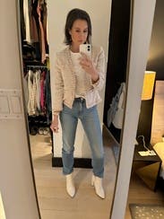 I wore this jacket to two board meetings and it took my jeans/tank/flats outfit to a more elevated polished look. I loved it! I kept it for another cycle.