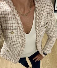 Tons of compliments every time I wore this jacket! Wore as a spring coat with jeans or dressed with black or white slacks. Tailored fit, gold details - loved!