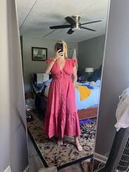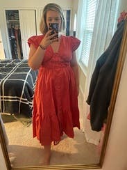Loved the general fit of this dress— super cute for a baby shower. However, I could’ve gone down one size.