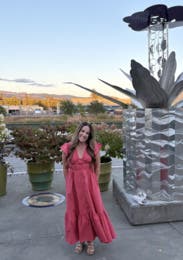 This dress is everything. Comfy for play. Dressy for garden parties. Fun and fresh. Fabric feels soooo good. Dress always looks good. Packs well. Great fit in the bust and waist. Love this creator!