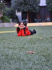 The color of this sweater is much brighter in person, and I love it. It’s warm, soft, and fits great!