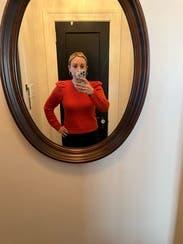 I got lots of compliments on this sweater! Note that the color is more orange than red. Still worked well during the holiday season.