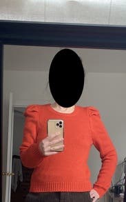 Perfect length, great color, cute puff sleeve. Great everyday sweater. And not too hot for those of us that run hot 🥵