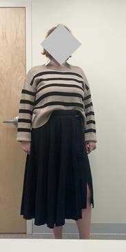 Loved this sweater due to the hemline and lightly baggy sleeves. I wore it mostly with a skirt and tights, but just as cute with jeans!