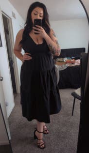 Didn't go bananas about it in person but it looked great in photos and fit well and was a nice classic black dress. Flowy and light fabric.