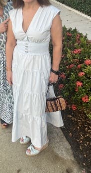 Lovely dress great designer. Fits so well. Comfy all day 10 hours in a foreign country. So fun and so free but also elegant if you need it to be.