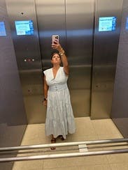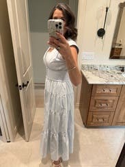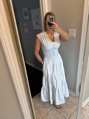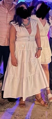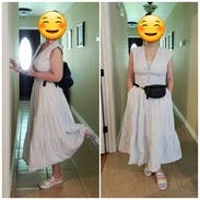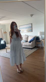 This dress was so comfortable and perfect for a hot day (engagement photos). My only issue was how low cut it was. My bra kept popping out :(