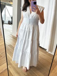 IMO this dress is one that looks better in the pic with the model than in real life. I wanted to like it but I'd say it wasn't my fav. It fit well but don't love the belting in the middle. Also, tons of fabric and wrinkles easily.