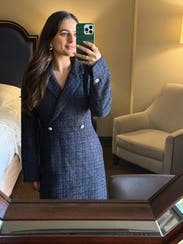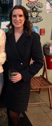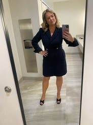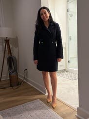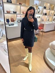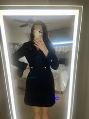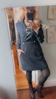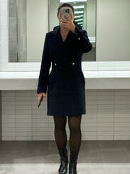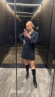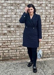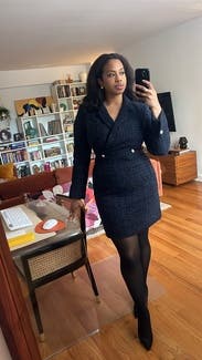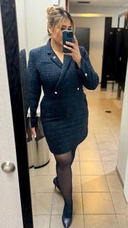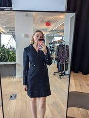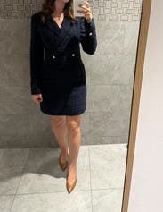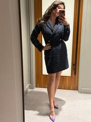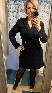 I loved this blazer dress!! I’m glad I went up a size because it was tight in the chest. The arms were a little big and long, but nothing too crazy. The length was perfectly professional while also being something I could wear for drinks with friends after work