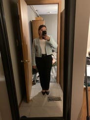 I got several compliments on this. It’s warm so keep that in mind. It’s cropped so may not work for long waisted or tall people. I wore it with a white t shirt tucked into high waisted jeans for dinner and trousers for work.