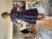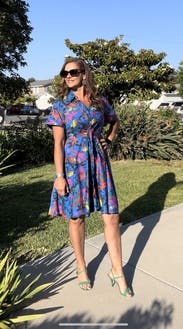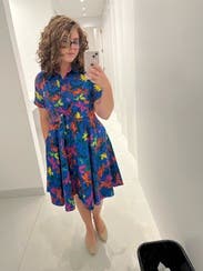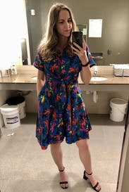 This dress did not disappoint. It’s colorful and fun! I wore for a daytime event in the heat of summer and it was great, comfortable and kept me cool. The colors on this print are amazing! Fit is true to size but if you are in between, size down.
