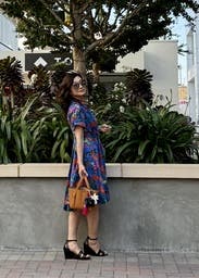 This dress is so vibrant! It fit perfectly with a small tie around the waist in the front that added a cute detail! It is fitted at the waist which I loved to show shape but something to keep in mind if that’s not for your body type! Such a fun pattern!