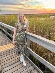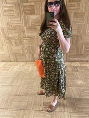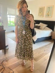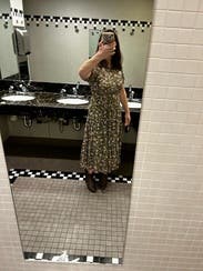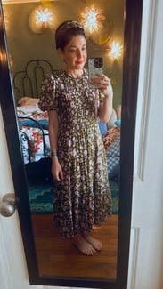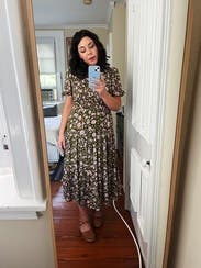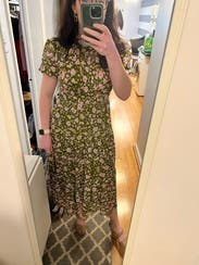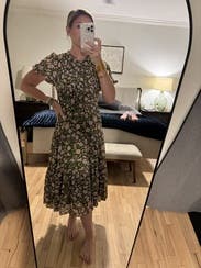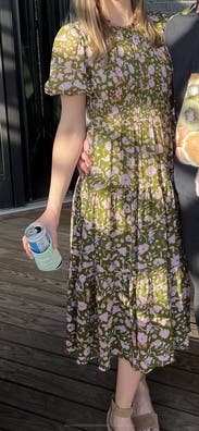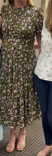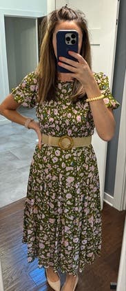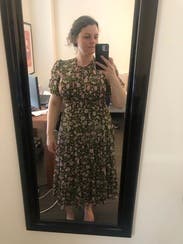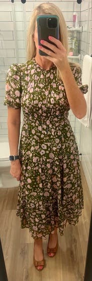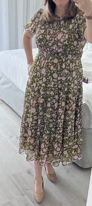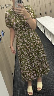 Perfect day dress and great for travel. The ribcage was a little snug. The light floral pattern was a treat. A midi dress that did not disappoint.