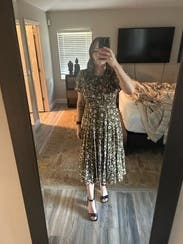 Love this dress! The print is good for spring or fall. This was my second time renting for a special work event. Lots of compliments. Considered buying again this time!