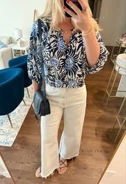 Pretty top. I love that it’s a length you don’t need to tuck in. And it’s loose but looks very put together. I wore it with jeans.