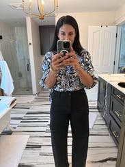 Love the idea of this top but I needed to be able to cinch the tie at the waist to make it flattering, and that wasn't possible. Didn't wear it.