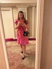 Color, material, and length were perfect, and wrap dresses are universally flattering, imo. I have a small bust so I went without a bra, and the neckline gaped a bit while seated. Nothing a pin or fashion tape (or better posture?) couldn't have fixed.