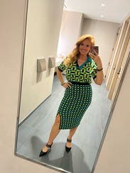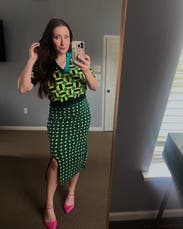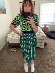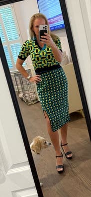 Loved the mix patterns and received so many compliments! I went up a size in the shirt because I’m a little busty and I wanted to make sure it wasn’t too snug – had plenty of room!