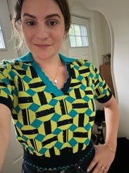I was so excited to wear this to work - I wish I had higher rise pants because this top was adorable. It was just a little too cropped for me. Great quality and fun fabric otherwise.