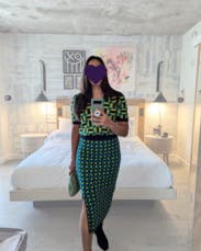This was a 10/10 for Miami paired with white jeans. It’s a fun pattern, the kind of piece that’s ideal to rent because it’s great for some pics but if it was in your closet you may hesitate to wear in repeat given the bold pattern. Just rent it!!