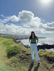 Let's just call it a crop top! I loved the print and the scallop details on the bottom but had to wear a tank top under because even with high waisted jeans - it was really short. Still - super cute and bright.