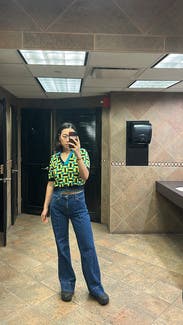 So many compliments on the fun print. I wore to a couple different work things. It is pretty cropped which was fine for virtual meetings but in person I had to wear something underneath to stop any skin from showing, even with highwaisted pants. It was easy to make it casual too with some jeans. Great looks.