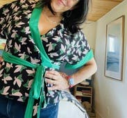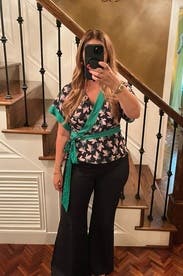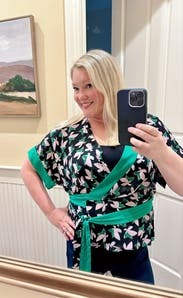 The wrap coverage of this blouse is fantastic! Colorful, fun and so much personality.